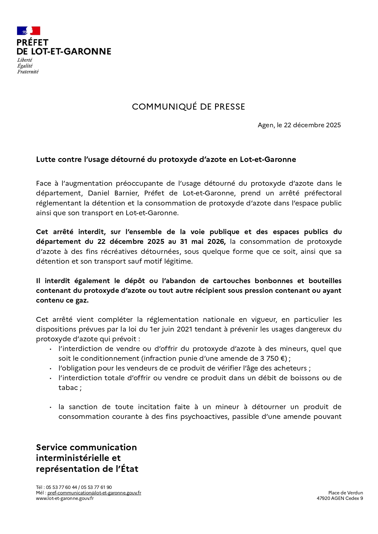 COMMUNIQUE DE PRESSE
